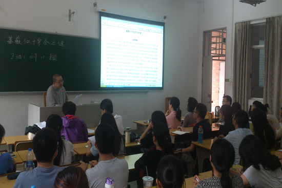 刘教授首先介绍了蔷薇十字会的由来,它的雏形是17世纪由一个基督徒创办的用炼金术为大众治病的兄弟会,并有三大宣传手册。其信条追求物质和灵魂的联合。同时教授又介绍了蔷薇十字会在欧洲的传播情况、其创始人的生平经历以及其经历所反映出的欧洲文化与犹太教神秘主义、阿拉伯文化以及古希腊文化的密切关系。