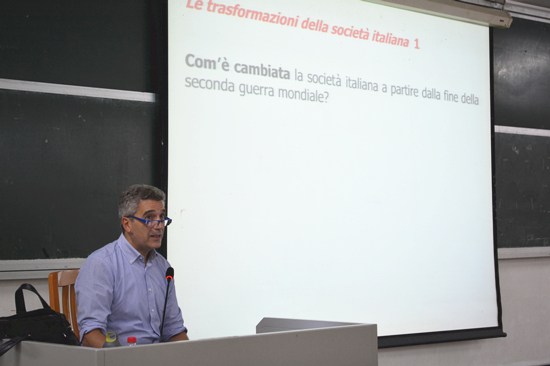 本次讲座中,Ventrone教授主要向同学们介绍了意大利在二战之后的经济、文化和社会生活中的发展和变化。同时还介绍了意大利人口政策方面的变化情况。通过利用Power Point演示文稿中展示的文字信息和图片中的图表数据,使同学们能够更加透彻地进行了解。