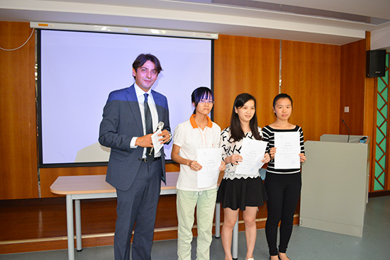 MBA教育中心306教室隆重举行。出席本次会议的有意大利驻广州总领馆领事白思诺(Massimo Baldassarre)先生,意大利驻广州总领馆文化处负责人施丽萍女士,外教Matteo Brandi老师以及浪live