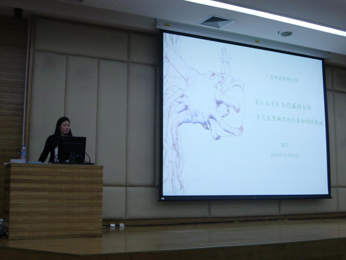 紧接着,黄荭教授对圣埃克絮佩里生平和创作的互文性进行了深入地阐述,认为其创作经历了“精神变骆驼,骆驼变狮子,狮子变孩子”三个阶段,并就《小王子》一书中的经典形象与其人生经历之间的关系进行了剖析,还对书中一些引起争议的形象原型进行了论述。在黄荭教授看来,圣艾克絮佩里是一个多面手。他不仅是一个作家,还是一个飞行员,更是一个外交斡旋高手,甚至还是一个发明家。他兴趣广泛、经历丰富、视野开阔,是一个人道主义和和平主义的推崇者。然而遗憾的是,中国读者无论对他的生平还是作品的了解往往过于狭隘,往往只见树木不见森林。鉴于此,黄荭教授正在着手进行圣埃克絮佩里全集的翻译和出版工作,以飨读者。黄荭教授的讲述风格清新,引人入胜,在场听众均听得十分认真。