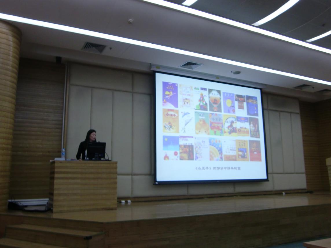 讲座伊始,黄荭教授从自身经验谈起,叙述了她的创作经历和她与圣埃克絮佩里作品的渊源。接着,黄荭教授对《小王子》中、英、法不同的版本进行了介绍和点评,并与大家分享了《小王子》几个版本出版前后的一些趣事。她还对近年来基于《小王子》改编的音乐剧、电影等影视创作作品进行了评述。