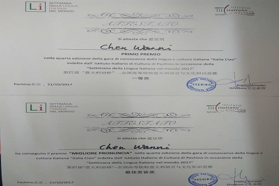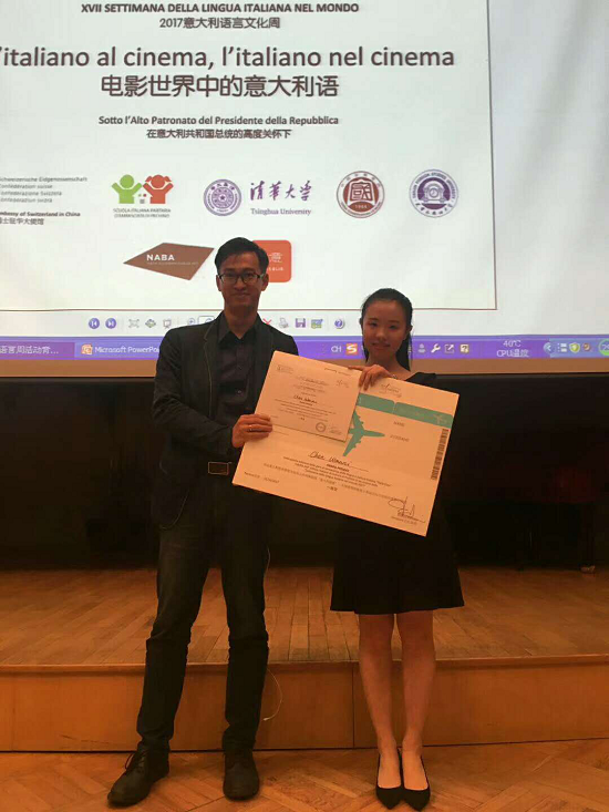 意大利语系学生陈婉霓夺得一等奖,并获最佳发音奖。