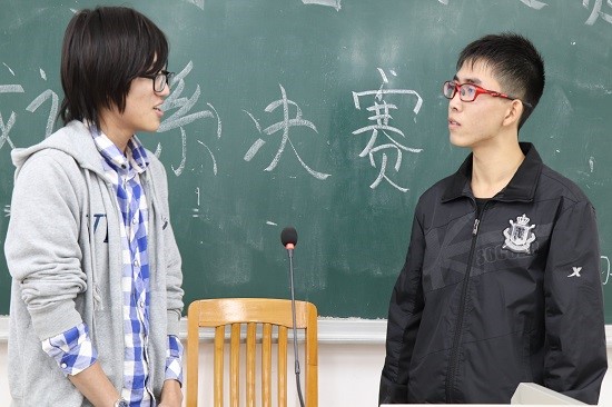 8号选手李锐和18号选手陈杰彬在表演小品