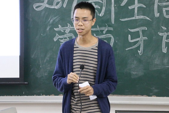 19时整,在参赛选手和评委都已入席就坐后,作为大赛主持人的2017级葡萄牙语系班导黎钊德同学走上讲台宣布比赛开始,并就本次大赛的比赛环节和评分项目等内容进行了详细介绍。
