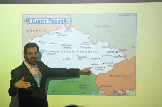 讲座开始,安德烈教授用地图向同学们介绍了捷克的地理位置及地形地貌,并以捷克首都仙塔之城——布拉格为例,向同学们展示了捷克的特色建筑。随后,安德烈教授用一幅幅各具特色的图片,简要介绍了捷克的主要城市的风景名胜和特色文化,如比尔森的淡啤酒和布尔诺的Knedliky。