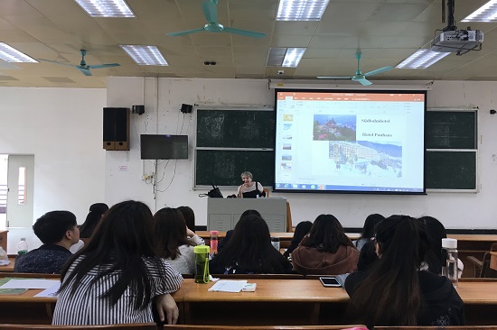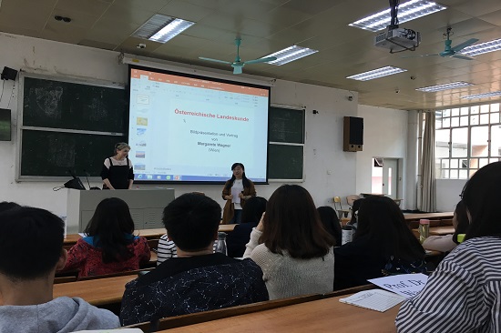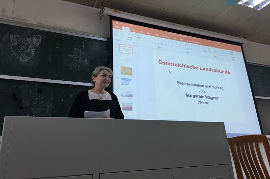 本网讯 2018年3月26日上午,奥地利概况讲座在二教217教室顺利举行。维也纳大学日耳曼学教授玛格丽特·瓦格纳女士应邀担任本次讲座主讲人。讲座由浪live
