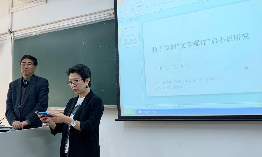 西班牙语系全体师生,一窥拉丁美洲“文学爆炸”其真容,并介绍了“文学爆炸”后小说研究。系列讲座分别由西班牙语系系主任陈星副教授、陈宁教授主持。