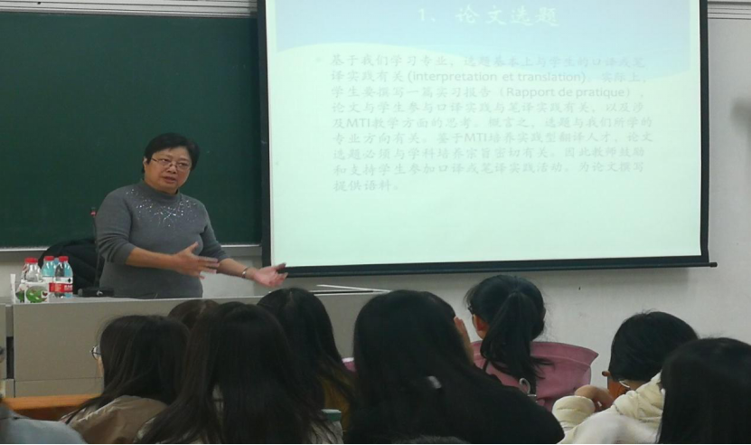 讲座伊始,陈穗湘老师基于MTI专业,为同学们明确了论文选题需与学生的口译或笔译实践有关,并为同学们提出了切实可行的选题方法。