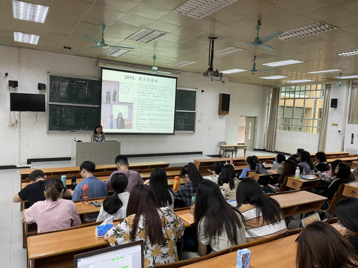 本次讲座开始之前,黄荭教授先带领大家参观了“梁宗岱纪念室”,对梁宗岱先生的生平创作与思想理念有了很直观的感受。在之后的讲座中,黄荭教授首先带同学们回顾了2013年纪念梁宗岱诞辰110周年举办的梁宗岱译坛,展示了丰富的名家学术研究论文。其次,黄荭教授向同学们展示了梁宗岱译集,随之提出了有关翻译的重要问题,即为什么译、为谁译、译什么、以及怎么译的问题。最后,黄荭教授还对今天的译者提出了宝贵的建议和方向指引。
