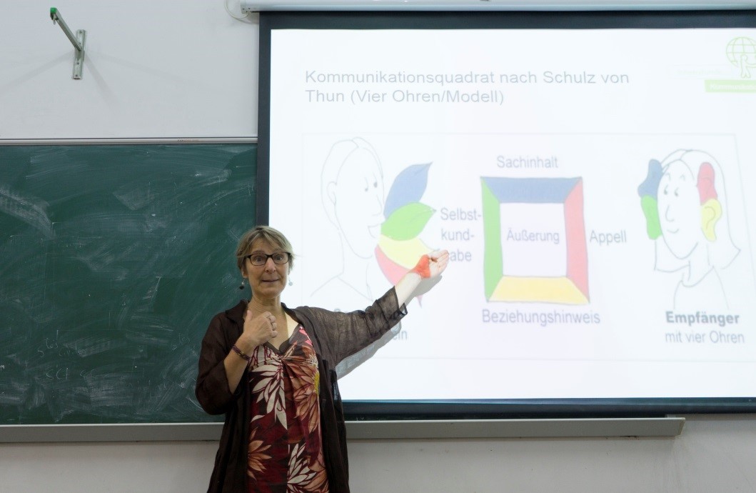 第二部分则是在文化交际中的一些指导,例如形式上、时间安排等方面要注意的问题。Wünsche博士举了德国大学生活中会遇到的例子,既针对学生专业会遇到的问题又引申到对于世界各国的文化适用的方法。
