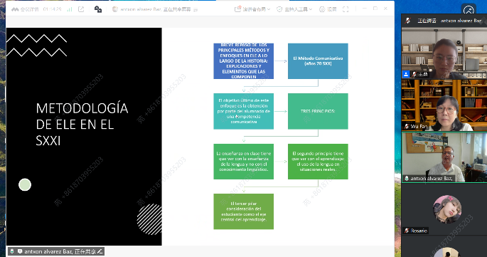 西班牙语系师生开展一场主题为《二十一世纪对外西班牙语教学方法》的学术讲座。本次讲座由西班牙语系教师王苑博士主持,讲座氛围活跃,师生积极互动。