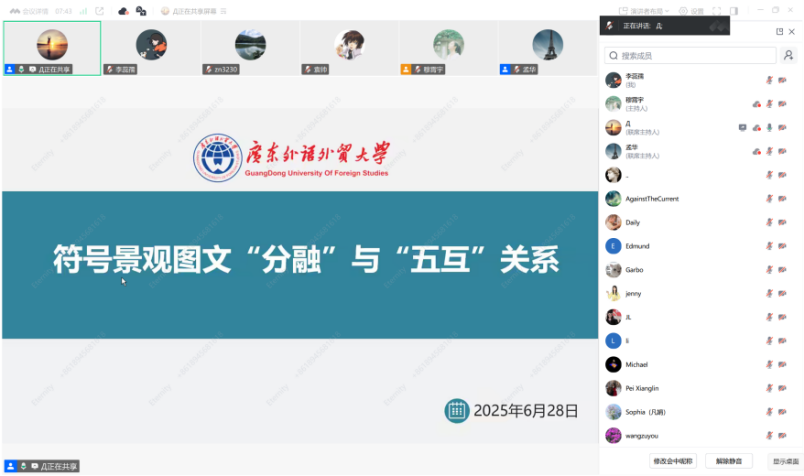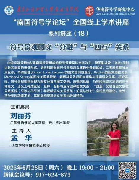 本网讯 2025年6月28日19:00-21:00,“南国符号学论坛”全国线上学术讲座系列第18讲通过腾讯会议平台圆满举办,吸引了来自全国高校、研究机构的近二百名学者及师生在线参与。本讲由浪live