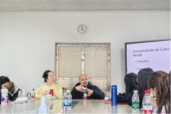 费雷拉教授长期致力于农村社会学、粮食安全与发展等领域的研究。座谈会上,他介绍了佛得角的基本国情、产业结构以及佛得角大学的办学概况、学科发展趋势,还特别分享了广外-佛得角孔子学院在当地的教学活动。