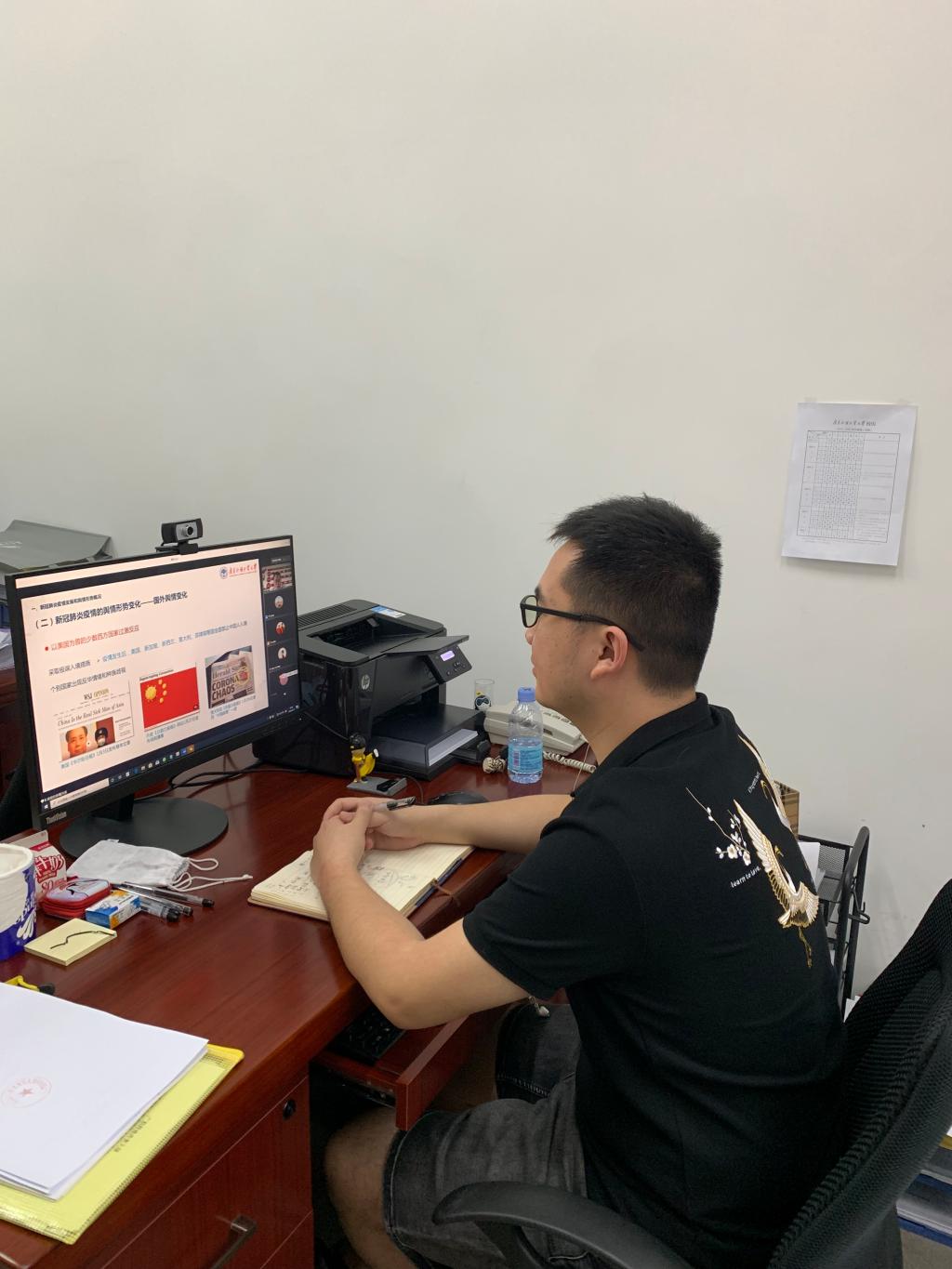 党委常委、宣传部部长、思政宣讲团成员胡文涛教授作主题为“我国疫情防控中的舆情演变与国际舆论斗争”专题报告。学院全体教职员工,学生党团干部,入党积极分子和发展对象共120余人参加宣讲会。宣讲会由学院党委书记敖湘晖主持。