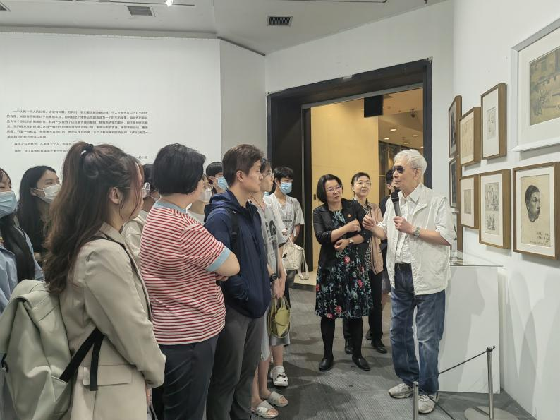 恽老的作品是新中国成立以来各个历史时期的重要见证,他敏锐地捕捉到时代变迁的信息,又坚持不懈地推进自己最为倾注心力的历史画和肖像画创作。在恽老的带领下,师生党员参观了“主体性历史画创作”、“肖像艺术”、“速写与写生”三大类作品,感悟一幅幅作品背后的时代精神,感受人民文艺的精神力量。