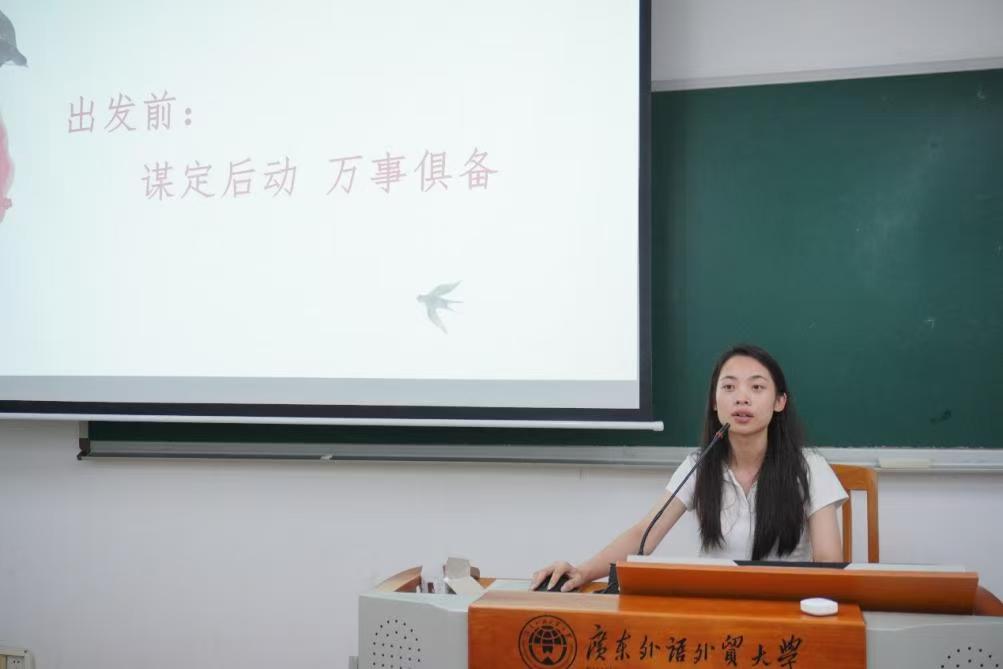 往届队员麦文疑就实践规划及实施向大家分享了三阶段方案:出发前组建团队、完成安全调研与宣传筹备;实践中落实例会、调研及宣传记录;返程后整理报告、推广成果并动员参赛。她强调了分工协作及成果记录对提升实践影响力与成员成长的重要性。