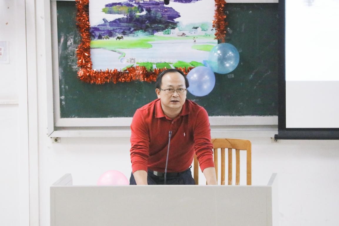 党委副书记陈华荣老师发表讲话。他表示学校十分重视“三下乡”实践活动,并对参与2018年暑期“三下乡”社会实践活动的队伍给予了高度的评价,鼓励在座的同学积极参与“三下乡”活动,结合所学回馈社会。