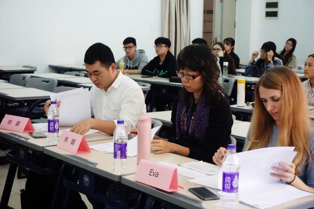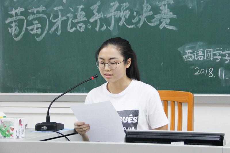 11月15日下午,葡萄牙语系新生语音语调大赛在二教228举行。与其他语系不同的是,葡语专业的学生采用一局定胜负的方式,由老师在网上选取几篇文章,让同学们在上台前随机抽取其中一篇进行朗读。