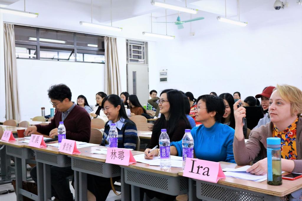 在学习部工作人员紧张地统计分数的同时,两位外教走上讲台对本次大赛中同学们地表现进行点评和鼓励,更加激励了意大利语系同学们努力学习的热情。同时,受邀参加本次比赛的嘉宾们也进行了点评。最后,全体出席本次比赛的人员共同合影留念,为本次预决赛画上完美的句号。