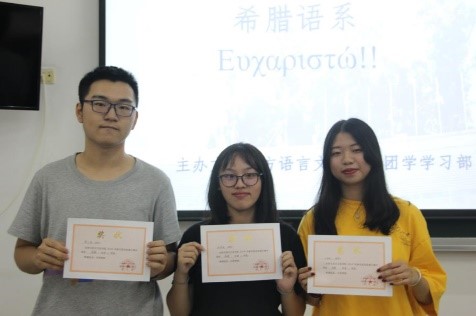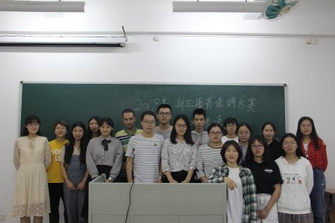 新生语音语调大赛希腊语系预决赛于六教b209顺利举行。此次大赛邀请了希腊语系专业课教师尚冰,张欢,周童苏及外教兰普洛斯·帕帕雅尼斯(Λάμπρος Παπαγιάννης)担任评审,大二的朱天昊同学担任主持人。共有11名来自2018级希腊语系的同学参赛。