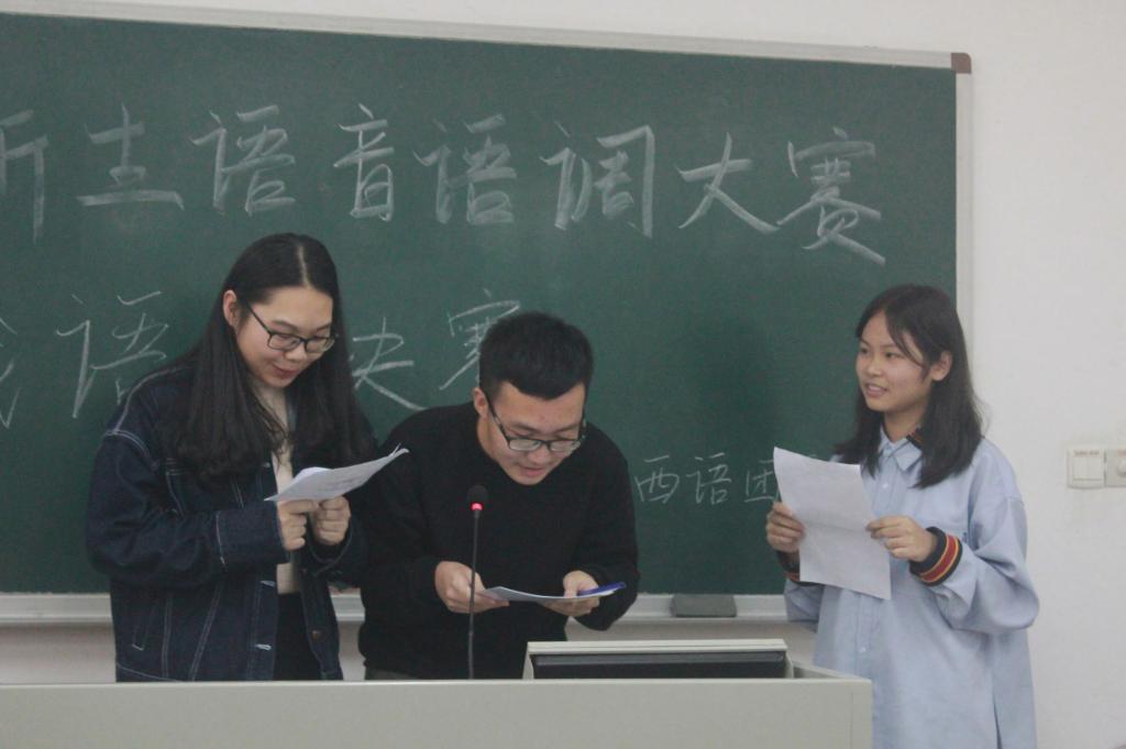 西班牙语语音语调大赛决赛在第六教学楼B207教室顺利举行,在初赛中杀出重围的西班牙语系同学们全数参加了本次大赛。本次比赛由西班牙语系陈星老师、林婧老师和外教Eva老师担任评委,共同评估和欣赏同学们对于西班牙语语音语调学习的成果。