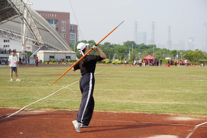 下午十四时许,女子学生标枪决赛和女子学生三级跳远决赛同时进行。吴慧琳、施洁儿同学在烈日下奋力一掷,刘冬倩、盘梦婷同学在沙池前冲刺跳跃。与此同时,卢国贶同学在男子学生铅球决赛中用力掷出手中球体,在赛场上斩获佳绩。