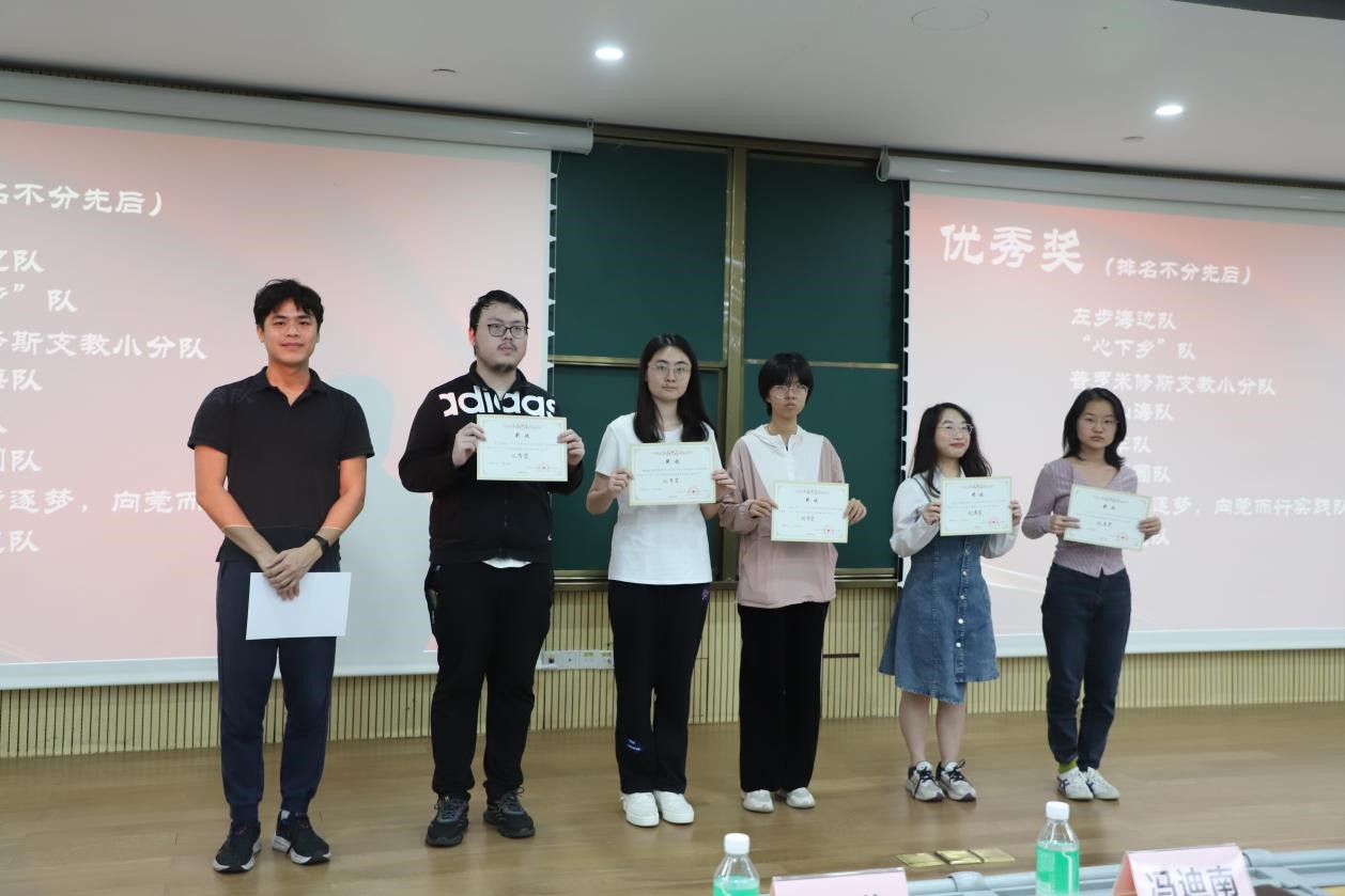 随着表彰大会逐渐接近尾声,终于到了激动人心的颁奖环节。左步海边队、“心下乡”队普罗米修斯支教小分队、启明山海队叮叮车队、花好月圆队、“夏”乡逐梦,向莞而行实践队、文兴南越队荣获优秀奖,西遇乡途队、青云直上队荣获一等奖,希望波涛实践队、星筠一夏队、红色新“西”望队荣获二等奖,祥麟文化传扬队、西语平岗队、“西语和风,爱农助乡”队、“寻灯觅到,品茶守艺”队荣获三等奖。颁奖仪式是对西语学子们的肯定,也为他们意义非凡、硕果累累的“三下乡”之行画上了完满的句号。