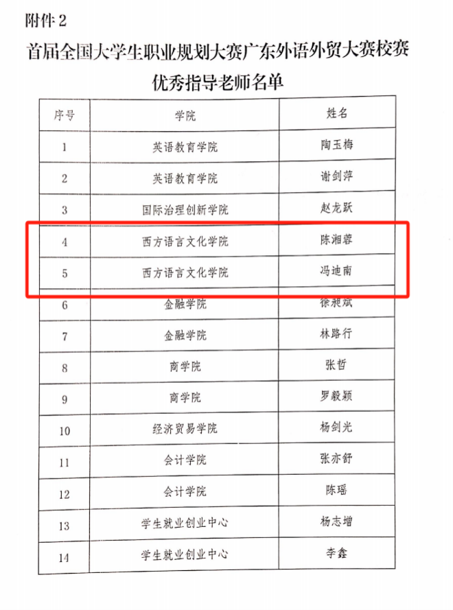 学子成绩喜人,共有5人获奖:本科21级麦文疑、王婷、杨蕾蕾三位同学分获成长赛道金、银、铜奖;硕士23级雪冰怡、张程程分获就业赛道金、银奖。冯迪南、陈湘蓉两位老师获评优秀指导老师。