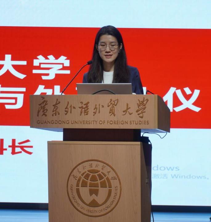本科新生代表向思喆同学分享了语言学习带来的感悟和对大学生活的期待。她表示,语言不仅是沟通工具,更是通往不同文化的大门,期望大家能在“明德尚行,学贯中西”的校训引领下,探索语言奥秘,感受文化魅力; 鼓励同学们珍惜同窗情谊,坚定信念,勇敢追梦,用行动将梦想变成现实。