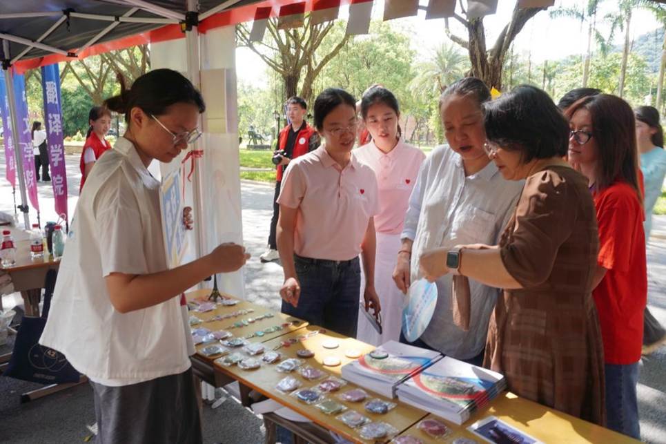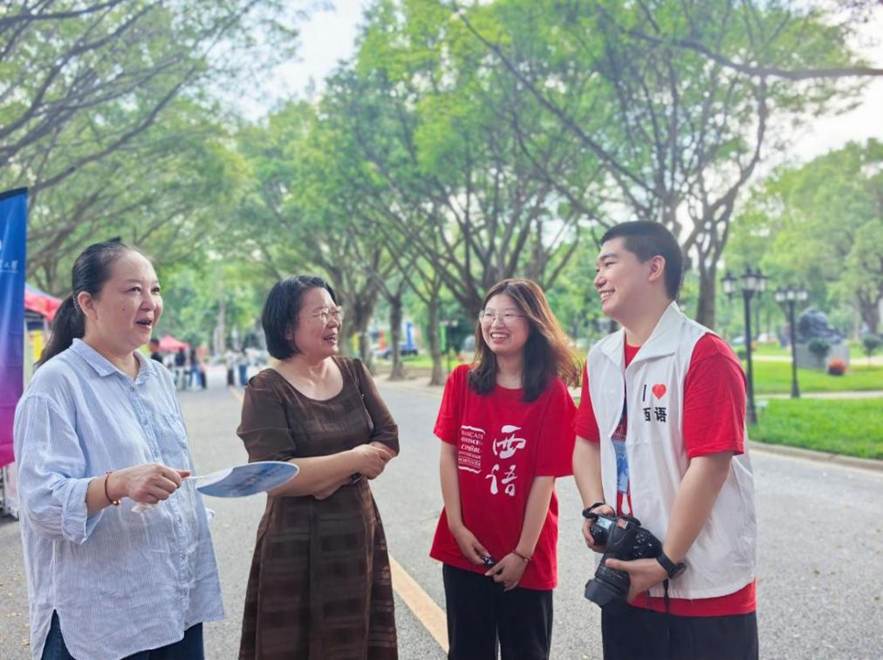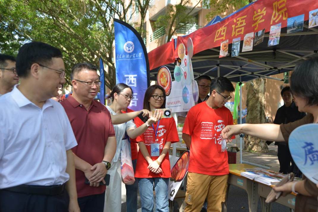 校党委书记石佑启、副校长谢伟光走访西语迎新摊位