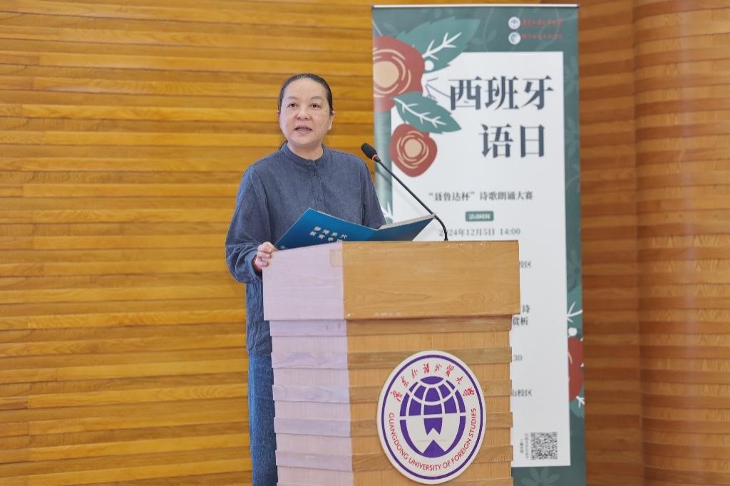 “活动育人”的教育理念,突出了西班牙语系雄厚的师资力量和完善的人才培养体系。同时,她还强调了诗歌在语言学习与文化交流中的重要性,鼓励学生们通过比赛深刻体验诗歌的魅力,进而提升自己的语言感知能力。