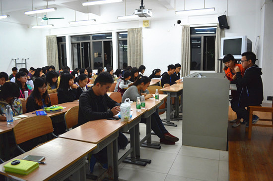 会议伊始,法语11级的刘姗姗首先进行分享,她提到不仅要安排好时间学好专知识,还要努力拓展自己的知识面,多阅读,多积累,做一个有“墨水”的人;俄语11级的郑灿平就如何做好大学生生涯规划给师弟、师妹们提出了宝贵了建议,并对大学生错误认识进行了解释;西班牙语11级的郑灏泽则分享了自己的大学历程以及面试华为的经验,让同学们从他的自身经历中获得思考。