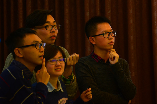 七点钟,比赛正式开始。本次比赛共分三个环节:必答题、选答题和梯度题,第一轮必答题共设20题,每题有十秒钟的思考时间。主持人在台上报题,七支队伍在台下举牌作答。当题目出现在大屏幕上时,每支队伍都抓紧时间进行讨论,气氛紧张而激烈,台下的观众也为队员们捏一把汗。第一轮结束后,四支队伍进入了下一轮。