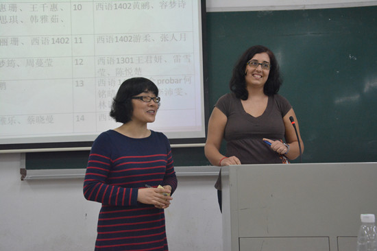 西班牙语歌唱大赛在北六教B204于七点准时开始。担任本次比赛的评委有秦晓莹老师、外教Virginia和研究生王佩琪。