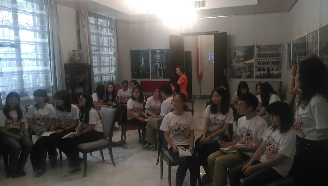 接下来领事话锋一转,告诉大家领事馆准备了一个小型知识竞赛,准备测试一下大家的学习成果。毫无准备的同学们都饶有兴致地参与了竞赛。题目分为必答题和抢答题,囊括了波兰的历史、地理、政治、文化、国情等方方面面。同学们认真思考,热烈讨论,积极回答,在一个多小时的竞赛中充分领略了波兰文化的魅力。最终优胜队伍获得了波兰驻广州领事馆专门制作的水杯,所有学生均获得了波兰原版肖邦音乐CD和纪念画册等丰厚奖品。