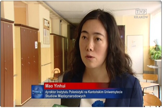波兰语专业的发展现状,并展望了该专业良好的发展前景。两名波兰语学子则向记者表达了对波兰语言文学的浓厚兴趣。该采访作为黄金段新闻在华沙TVP polonia电视台播放,标题是“甚至在中国都有人想学波兰语了!”。新闻采访使波兰观众大感兴趣,另一家波兰知名媒体Radio Eska.S.A.也闻风而至,对浪live