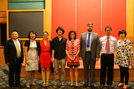 讲座最后设有提问环节,在场学生向两位音乐家提出了关于意大利爵士乐的作用于发展的问题,两位音乐家也用十分幽默的方式对问题作出了回答,赢得了现场的阵阵掌声。讲座结束后,艾古丽女士和两位音乐家与意大利语系老师合影留念。