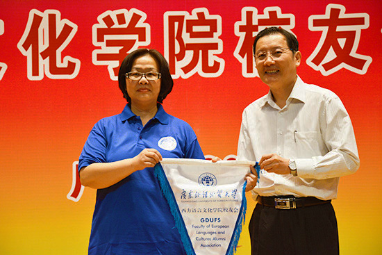 随后,在全体与会嘉宾的见证下,副校长方凡泉向校友会首任会长杨可院长授予广外浪live