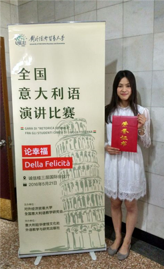 本网讯为进一步增进中意两国人民之间的友谊,加强相互了解,提高我国大学生的意大利语学习热情和意大利语学习水平,中国意大利语教学研究会于2016年5月21日举办第二届全国意大利语演讲大赛。经过学校校内严格选拔之后,浪live