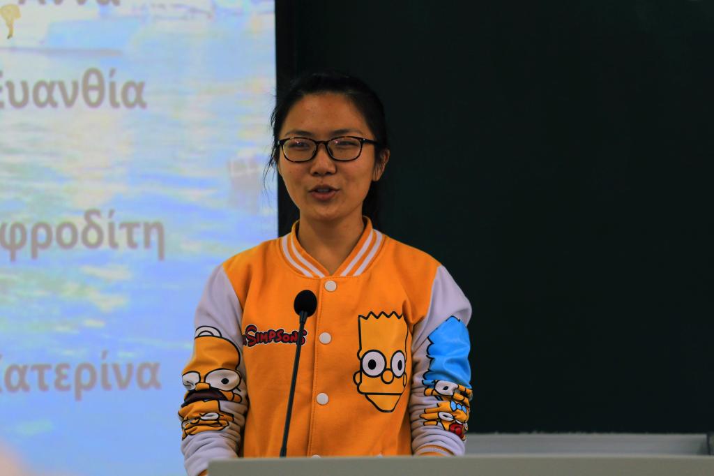 比赛的主持人是周童苏老师。首先,他以中、希两种语言介绍了本次比赛的背景、赛制和评分准则,并宣布比赛开始。