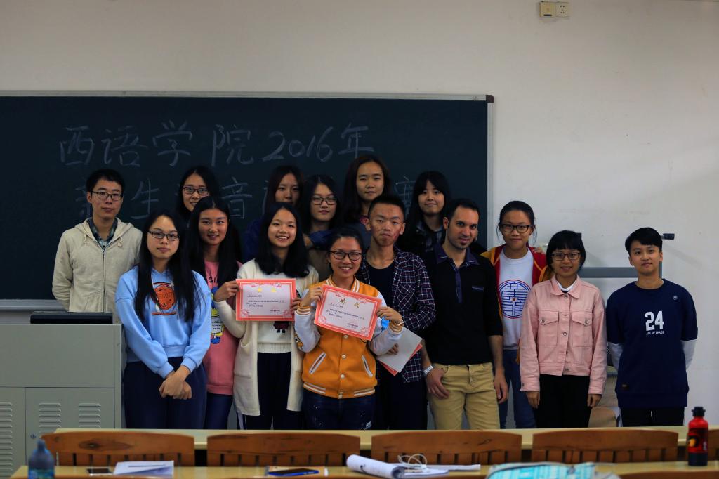 比赛名次在20位同学的朗读后很快有结果,在简单指出大多数同学犯的错误后,评委们鼓励2016级葡语新生再接再厉,勇敢踏实地在学习葡语的道路上走下去。