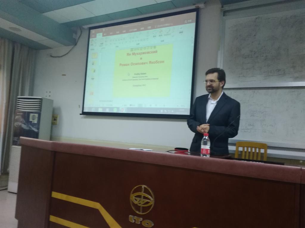 本网讯 2017年11月29日、30日,在学校海外名师项目的支持下,来自捷克的专家安德烈·斯拉德克教授为浪live 俄语专业本科生和研究生开设了题为《布拉格结构主义学派:穆卡若夫斯基与雅各布森》的讲座。俄语系不少教师也饶有兴致地前来听讲。