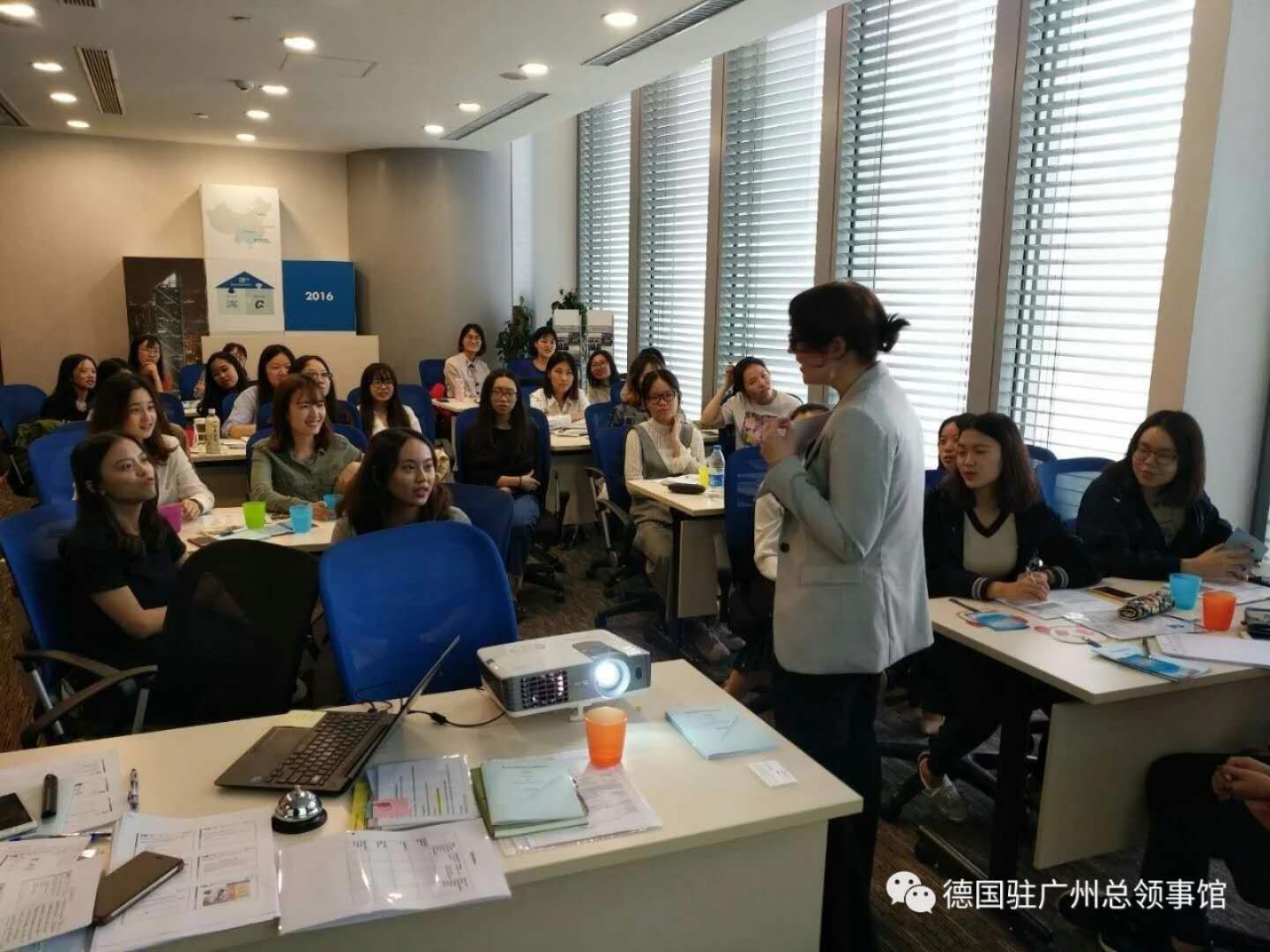 德语系三年级学生参加应聘专题研习会。此次活动由德意志学术交流中心(DAAD)和德国商会广州办事处(AHK Guangzhou)共同举办。共有30名学生参加了该活动。