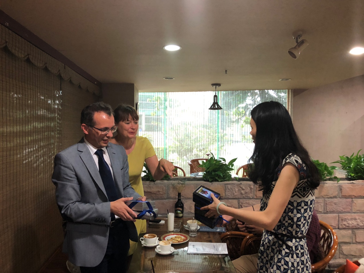 此外,双方围绕校际合作展开交谈,深入探讨彼此在本科生交流,研究生培养、特别是德语口译专业硕士培养领域展开进一步合作的可能性,并为下一阶段的校际合作和学术交流进行长远规划。会后,卢铭君教授代表德语系与两位波兰教授交换礼物。