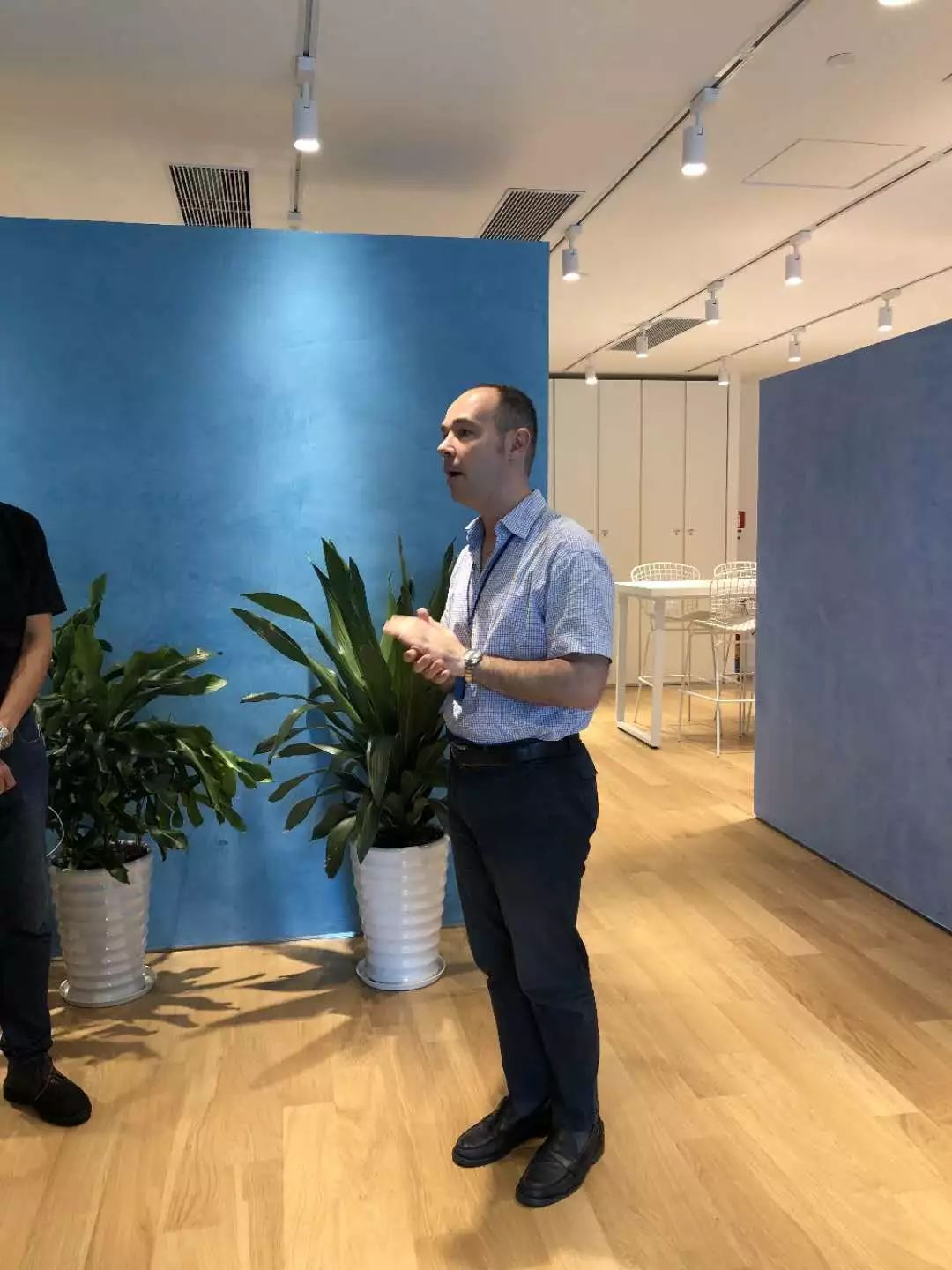 经过两重身份验证后,我们终于进入了领馆内。接待我们的是签证处处长潘枫林(Daniele Panifilo)先生。他向我们热情地介绍了意大利驻华使馆及各领事馆的分布情况,并重点介绍了驻广州总领馆主要负责的省份、负责辖区内前往意大利学习、经商、旅游的人数等等。此外,在介绍完毕后,潘先生还与我们积极互动。