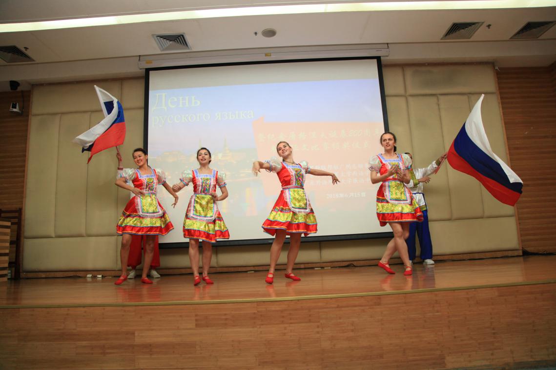 院长、俄语中心主任杨可,俄罗斯亚洲工业企业家联合会副主席刘维宁,西班牙格拉纳达大学斯拉夫语系教授、世界俄语学会主席团成员拉斐尔·季拉多·古斯曼以及来自中山大学俄语系、华南师范大学俄语系、广外南国商学院俄语系、广外附设外国语学校、广州外国语学校的师生代表。本次“俄语日”由浪live