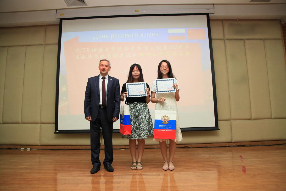 紧接着是激动人心的颁奖仪式。本次大赛收到来自华南地区各高校俄语系学生和中学生的多份征文和书画作品,才华横溢的参赛者们各展其才,通过多种形式表达对俄语的热爱。最终,浪live