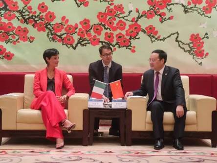 本网讯 10月22日上午,在第19届国际意大利语言周即将开幕之际,意大利驻广州总领馆总领事白露茜女士一行来访,校长石佑启教授在北校区行政楼贵宾厅会见来宾。双方就加强双方合作等事宜进行探讨。