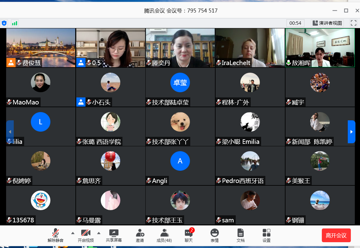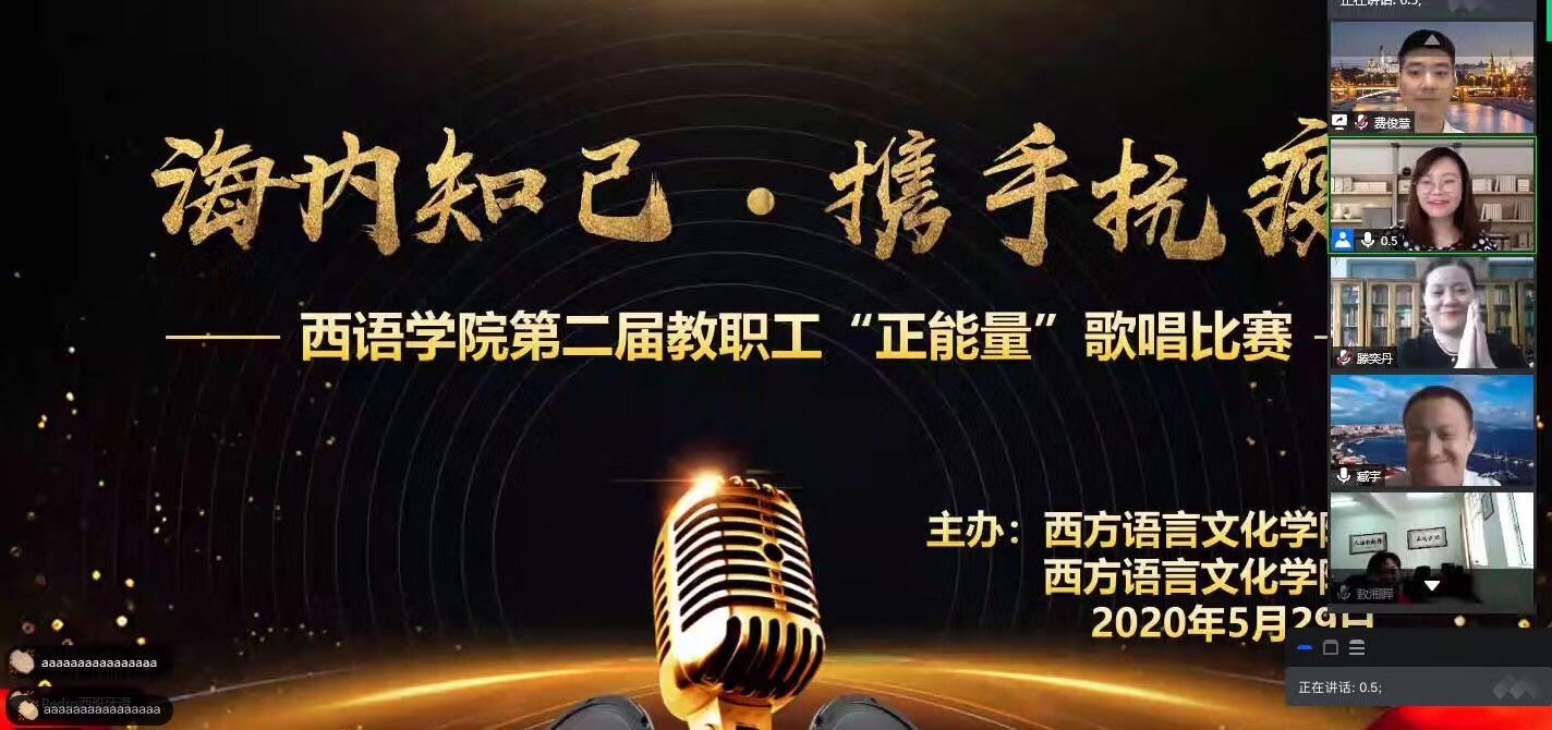 法语、德语、俄语、西班牙语、意大利语、波兰语、塞尔维亚语7个语系和党政干部、辅导员等15位教职工代表参与了本次比赛,各展歌喉,各显风采。虽然不能现场一睹风采,但各位参赛选手饱满的热情、优美的歌声穿透了屏幕,深深感染了每一位观众。