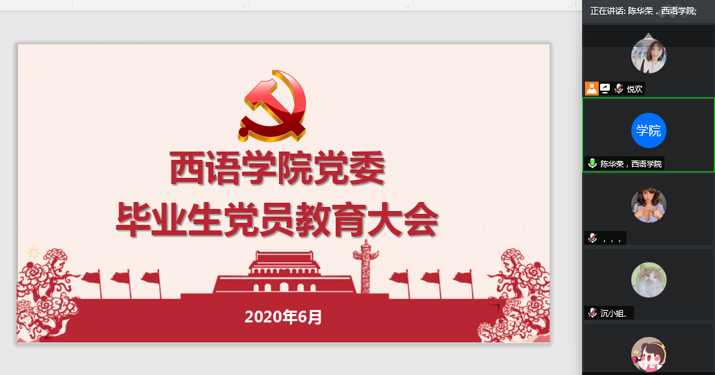 此次毕业生党员教育大会是一次特殊的组织生活会,是毕业党员大学期间最后一堂党课,西语通过党员大会,让毕业生党员们牢记母校嘱托,在今后的学习工作岗位上继续发挥党员先锋模范作用,争做新时代的奋斗者和追梦人。